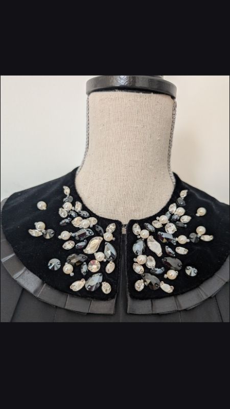 A removable velvet collar—lavishly embellished with intricate beading—adds a statement touch that can be styled on or off, allowing you to shift from sophisticated charm to modern minimalism with ease. The matching velvet belt cinches the waist for a flattering, defined shape, completing the piece with timeless polish.